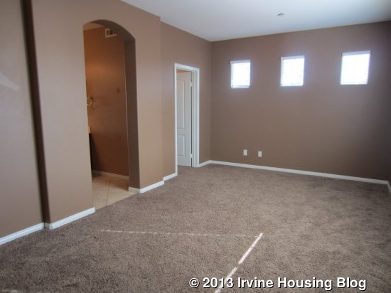 Overall, I felt like the living room and kitchen leave much to be desired. They are both small and the living room doesn’t really open up to the kitchen, so you are more secluded than in the wide open great rooms that are common in most new construction. Also, while I like having two master bedrooms, I wish the more elegant one was upstairs. I loved the large loft and thought it was a great added living space. Because it’s a townhouse, there are two sets of HOA dues, and both are higher than in many other communities. It is pretty big for a townhouse, but the high fees and overall layout would deter me from making an offer.