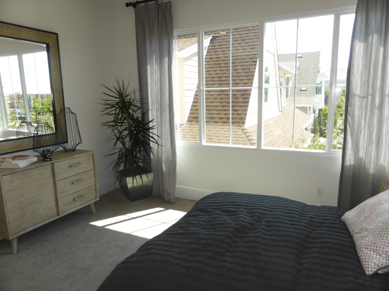 Bedroom 3 is a lot bigger and has a full wall of windows facing the back of the house, plus a small one on the side. It has a walk-in closet.