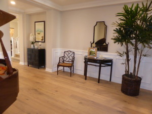 The hallway opens up into the main foyer of the home. It is a big area, with the stairs on the left and another coat closet beneath them.