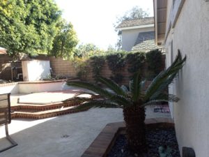 The backyard is a spacious, but has various steps and levels. An in-ground Jacuzzi sits up a couple of stairs. It is a nice space for entertaining and in the L-shaped yard, the side yard is equipped with a built-in bar-b-que.