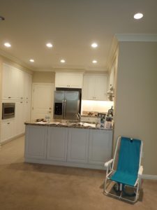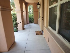 The front door is found under the balcony of the neighbor, so it acts as a covered patio which has space for a couple of small chairs on each side of the front door. Upon entry, you enter into a large rectangular room. The flooring throughout the home is carpeted apart from the kitchen bathrooms. The rectangular room consists of a dining area to the left and the living area to the right. The six windows throughout the room bring in a lot of natural light.