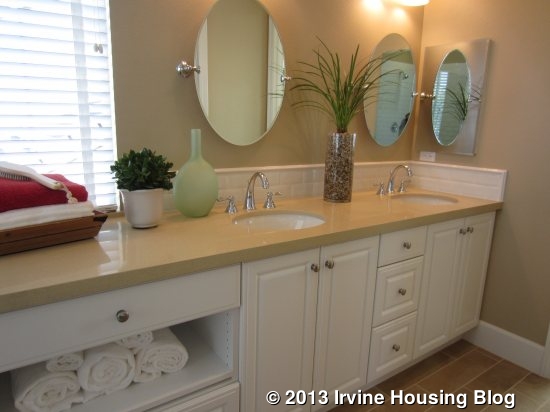 Overall, I really like the Sagewood models. I think they have good floor plans and spacious bedrooms. I believe that the downstairs bedroom and three-car garage featured in each home are very appealing. While most of the homes in the first five phases are probably already sold, I definitely think that the larger lot size makes these homes superior to those in phases 6-11. My primary concern is with the price. While the price isn’t out of line with other Irvine homes, it is a lot higher than Pavilion Park’s Whistler collection, despite being very similar in size and layout (all Whistler homes have just a two-car garage). It will be very interesting to compare sales in the two collections.
