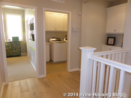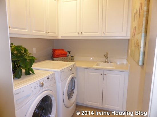 The laundry room is across from Bedroom 2. Like the other Sagewood homes, it has side by side machines, a sink, a counter and numerous cabinets. The cabinets are upgraded. There are additional sets of linen cabinets just outside the laundry room and just outside the master bedroom.