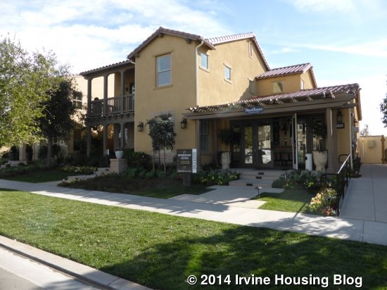 This week, I toured the Sagewood collection in the Great Park’s Pavilion Park Neighborhood. This collection was built by Shea Homes and, like the Whistler collection that I reviewed recently, it is mid-range for the neighborhood (five collections are smaller; four are bigger). The three Sagewood homes range from 2,515 – 2,941 square feet, with starting prices ranging from $1,015,900 – $1,135,900. All homes have four bedrooms (one has an optional fifth) and 3.5 – 4.5 bathrooms. Each home has a 3-car tandem garage and an outdoor retreat with an exterior fireplace. They are currently selling phase five, with a total of 11 planned phases, none of which are located near the models. Phases 1 – 5 (45 total homes) are near the eastern edge of the neighborhood (off Ridge Valley) and closer to Portola than to Irvine Blvd. Phases 6 – 11 (54 total homes) are near the main entrance to the neighborhood, closer to the toll road and Irvine Blvd (directly behind the current Harmony models). Phases 1 – 5 have lots that are about 6,500 square feet, as seen in the models. The lots for Phases 6 – 11 will be approximately 5,500 square feet.