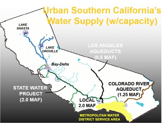 MWD gets it water from the Colorado River or the State Water Project. The Colorado River aqueduct, which is needed to transport the Colorado River water to southern California, was built in 1939, and the State Water Project system, which transports water from the northern California delta and the Sierra snowmelt by means of the California aqueduct, is out of date. Both these systems are in need of infrastructure updating. For example, the bay delta system, which is just a portion of the State Water Project system, is anticipated to need an estimated $27.8 billion in retrofits.